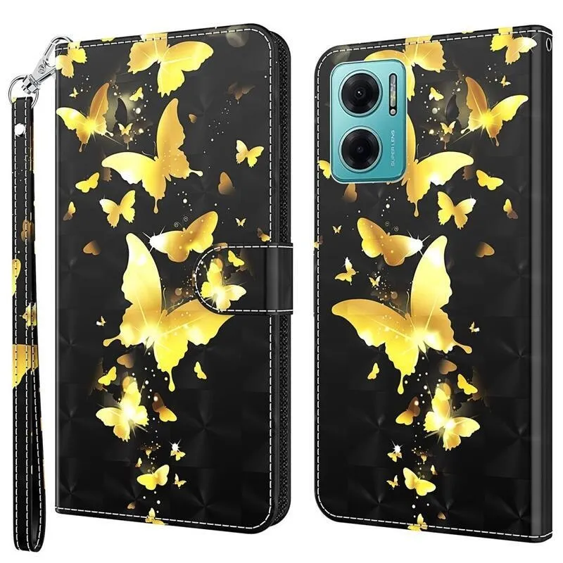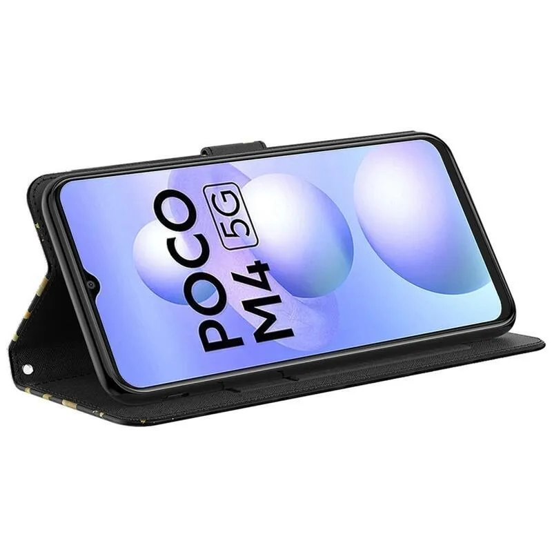Nyomtatott pénztárca tok Xiaomi Poco M4 5G - arany pillangókhoz