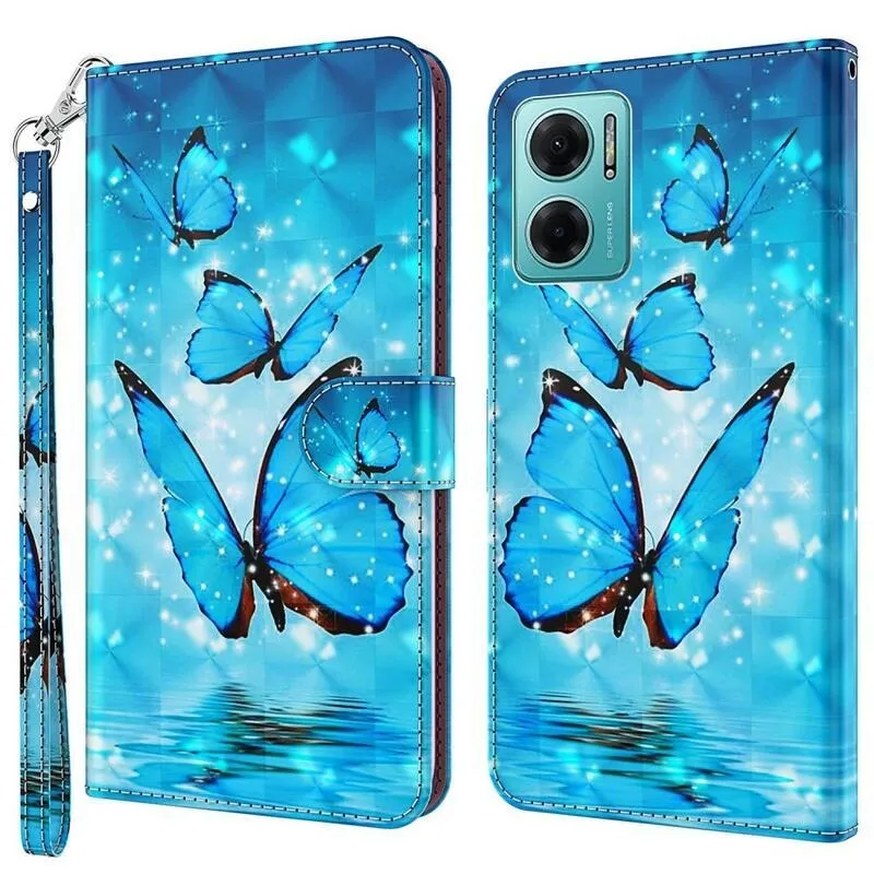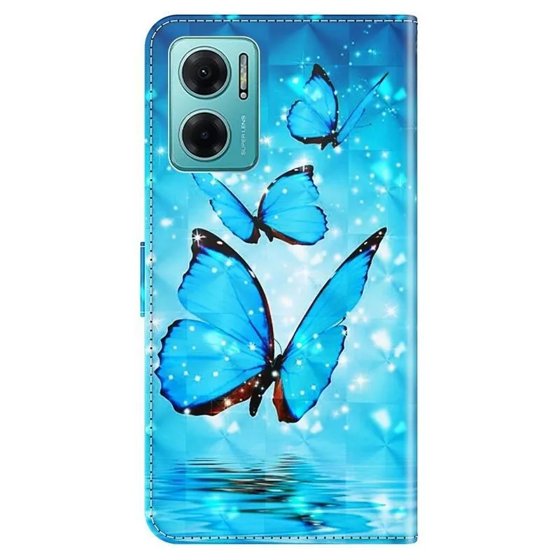 Nyomtatott pénztárca tok Xiaomi Poco M4 5G - kék pillangókhoz