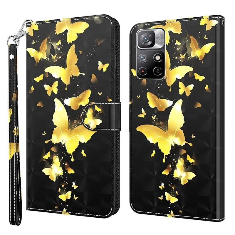 Nyomtatott pénztárca tok Xiaomi Poco M4 Pro 5G/Redmi Note 11S 5G - arany lepkékhez