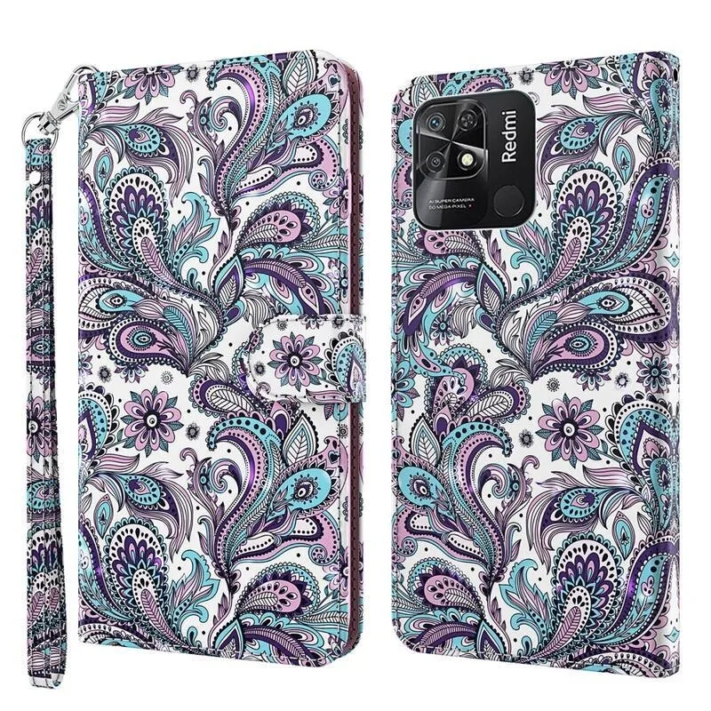 Könyvborító Nyomtatás a Xiaomi Redmi 10C számára kasmír virágmotívummal
