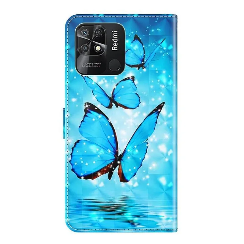 Nyomtatott pénztárca tok Xiaomi Redmi 10C - kék pillangókhoz