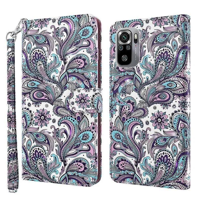 Nyomtatott pénztárca tok Xiaomi Redmi Note 10 4G/Redmi Note 10S/Poco M5s - kasmír minta