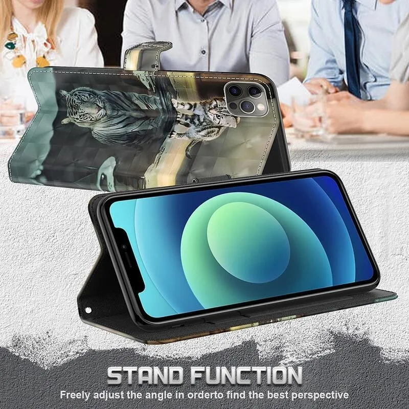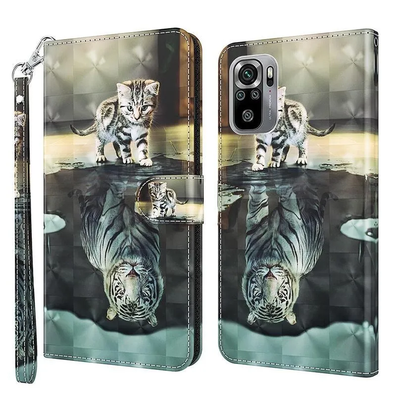 Nyomtatott pénztárca tok Xiaomi Redmi Note 10 4G/Redmi Note 10S/Poco M5s - macska és tigris tükröződéssel