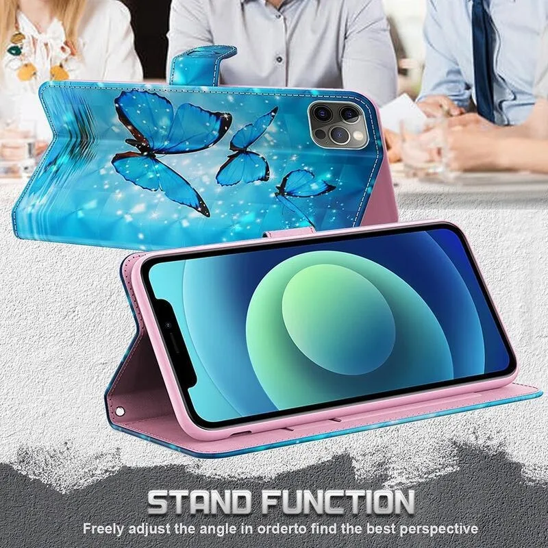 Nyomtatott pénztárca tok Xiaomi Redmi Note 10 5G/Poco M3 Pro 4G/5G - kék pillangókhoz