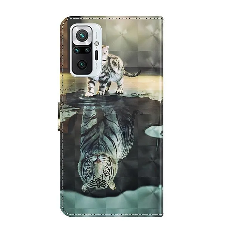 Nyomtatott pénztárca tok Xiaomi Redmi Note 10 Pro - macska és tigris tükörkép