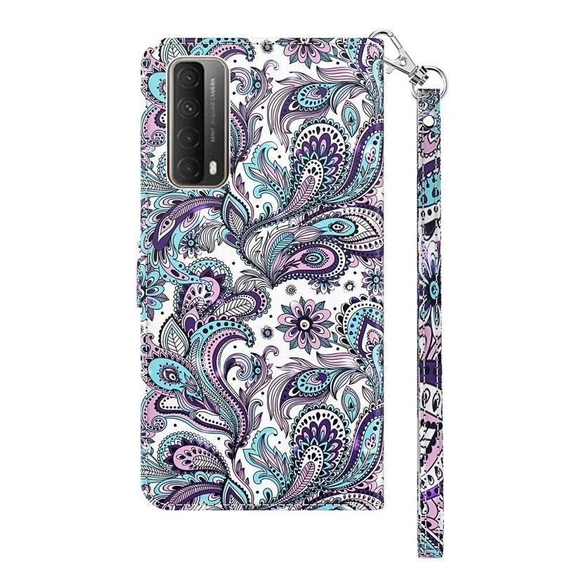Nyomtatott PU bőr pénztárca tok Huawei P Smart (2021) - kasmír minta