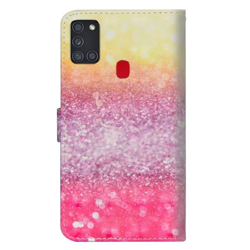Nyomtatott PU bőr pénztárca tok Samsung Galaxy A21s készülékhez - csillogó mintával