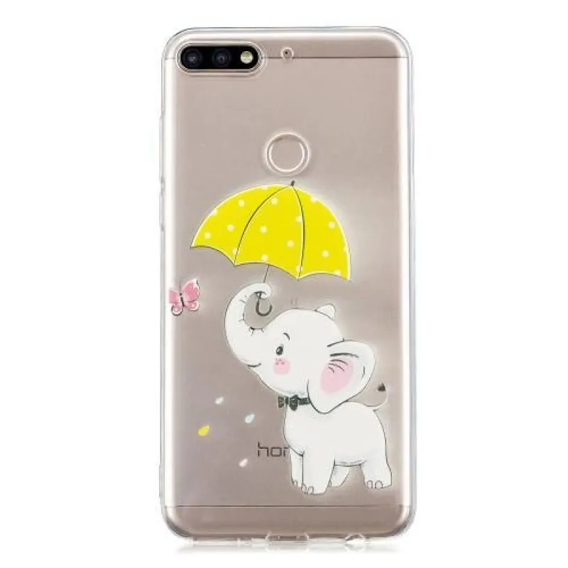 Átlátszó zselés tok elefánt motívummal és sárga esernyővel Honor 7C és Huawei Y7 Prime (2018) számára