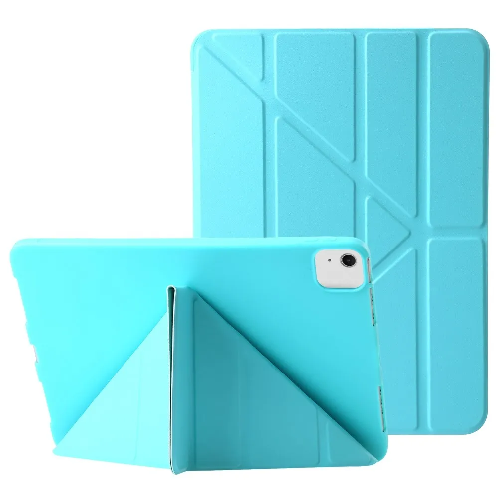 ✅【Tartós anyagok】Ez az Origamis összecsukható tok iPad Air 13 (2024)/(2025) tablethez világoskék színben, puha és rugalmas szilikonból és PU bőrből készült, tartósságot és megbízható védelmet nyújtva eszközének a mindennapi kopás és elhasználódás ellen.