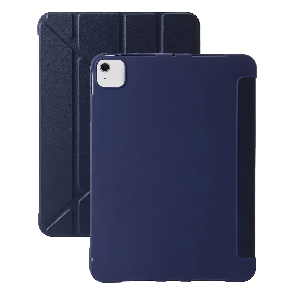 ✅【Tartós anyagok】Ez az Origamis összecsukható tok iPad Air 13 (2024)/(2025) tablethez sötétkék színben, puha és rugalmas szilikonból és PU bőrből készült, tartósságot és megbízható védelmet nyújtva eszközének a mindennapi kopás és elhasználódás ellen.