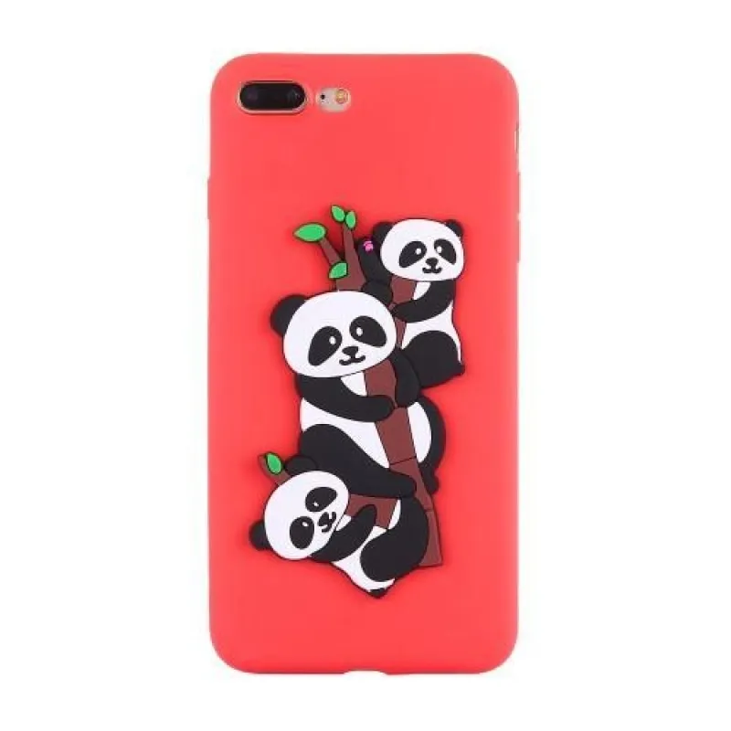 Panda 3D szilikon tok iPhone 7 Plus és iPhone 8 Plus készülékhez - piros színben