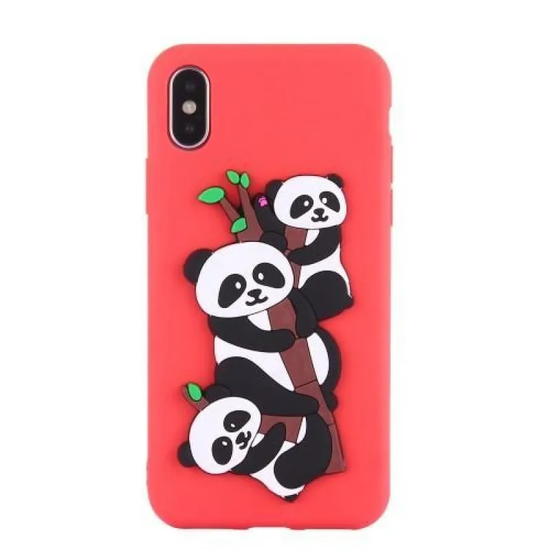 Védő piros zselés borítás három pandát ábrázoló 3D motívummal az iPhone X-en