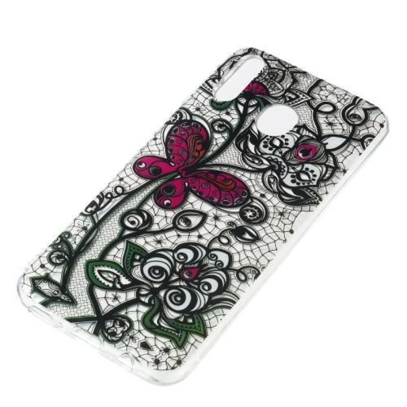 Patt gél tok Samsung Galaxy M20 készülékhez - fekete csipke és pillangó