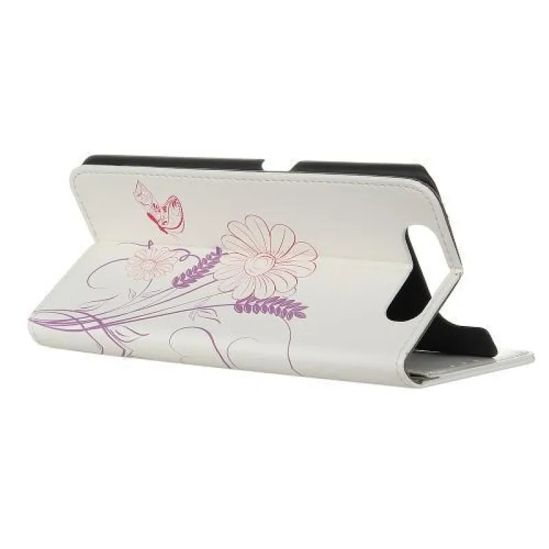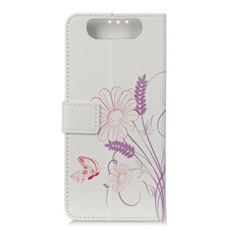 Patt PU bőr pénztárca tok Samsung Galaxy A80-hoz - pillangó és virág