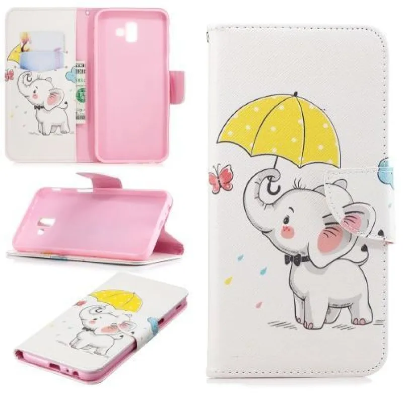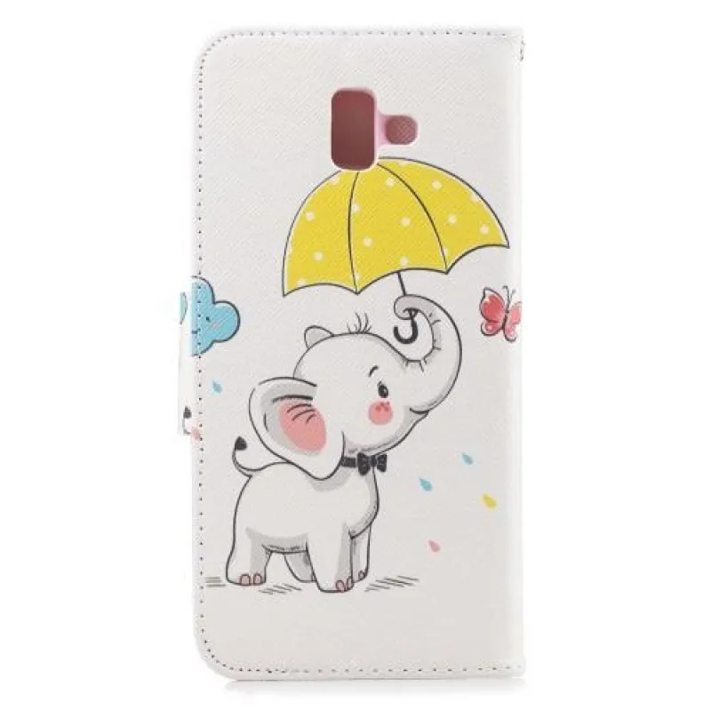 Aranyos flip bőr tok Samsung Galaxy J6+ elefánttal és esernyővel