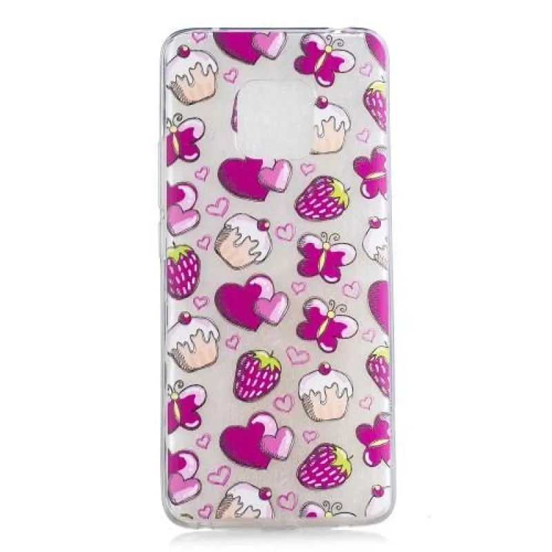 Átlátszó szilikon borítás édes süteményekkel és eperrel a Huawei Mate 20 Pro készülékhez