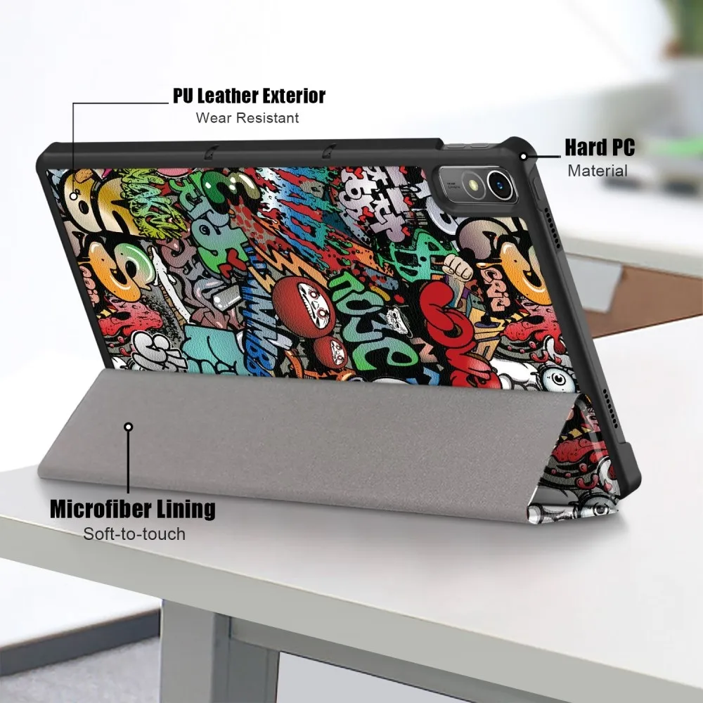 ✅Teljes védelem: A Lenovo Tab P11 (2. Gen) Patte Graffiti Smart Case tartós műbőr flip tokot és PC műanyag keretet kombinál, így átfogó védelmet nyújt a karcolások, esések és ütések ellen.