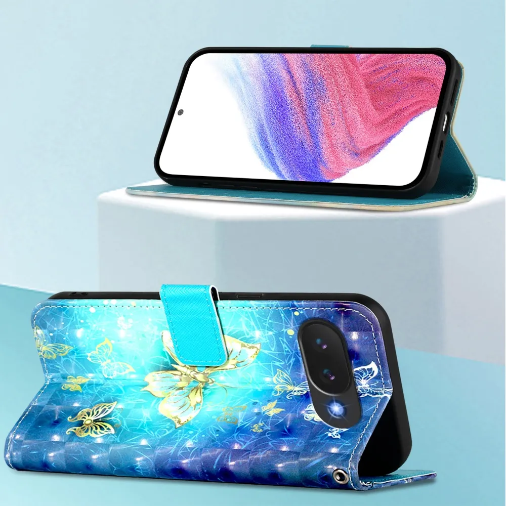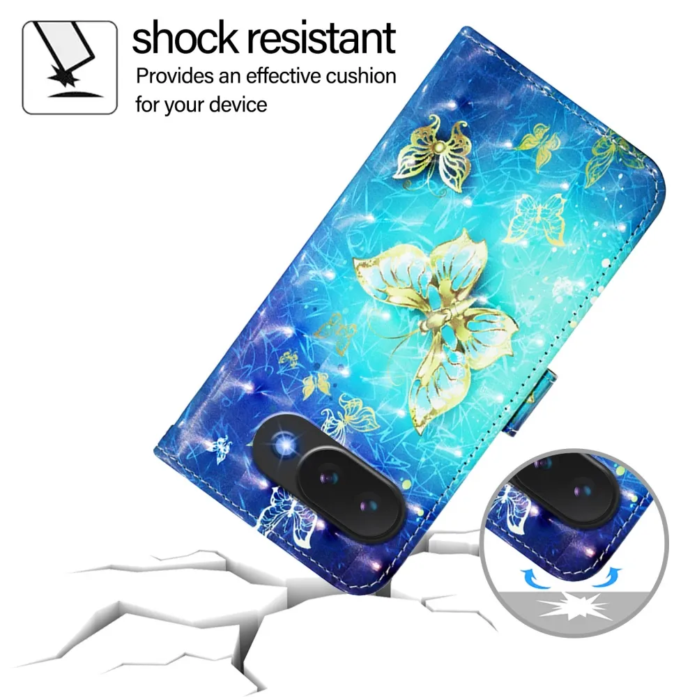 Patte könyv tok Google Pixel 10a - kék és arany pillangókhoz