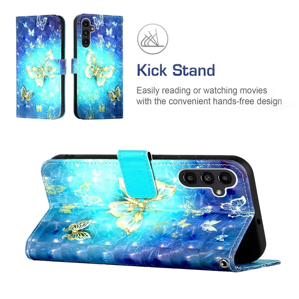 Tárca tok Patte a Samsung Galaxy A24 és a kép kék-arany pillangók