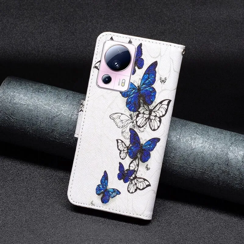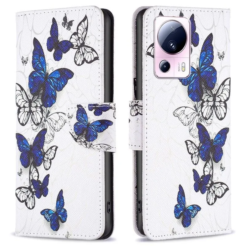 Patte könyv tok Xiaomi 13 Lite-hoz - kék és fehér pillangók