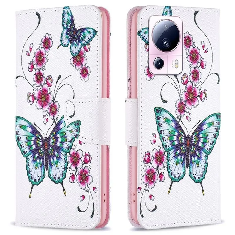 Patte könyv tok Xiaomi 13 Lite-hoz - zöld pillangó virágokkal