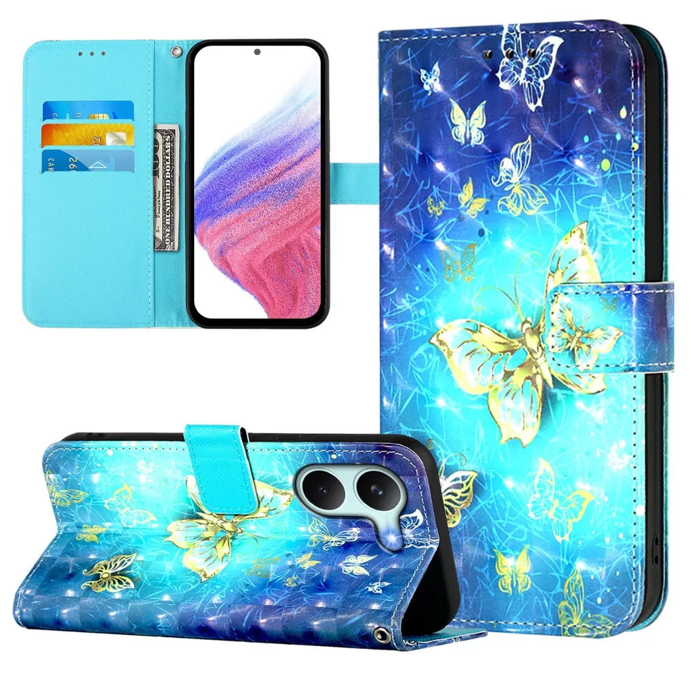 Patte könyv tok Xiaomi Poco X8 Pro 5G - kék és arany pillangókhoz