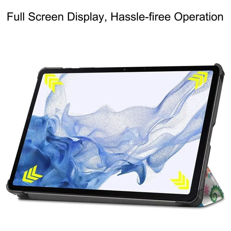 Patte okos PU bőr tablet tok Samsung Galaxy Tab S8 - pillangók és virágok