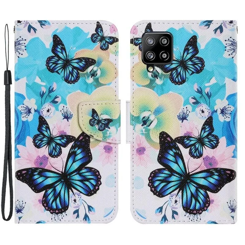 Patte pénztárca tok Samsung Galaxy A22 4G - kék pillangókhoz