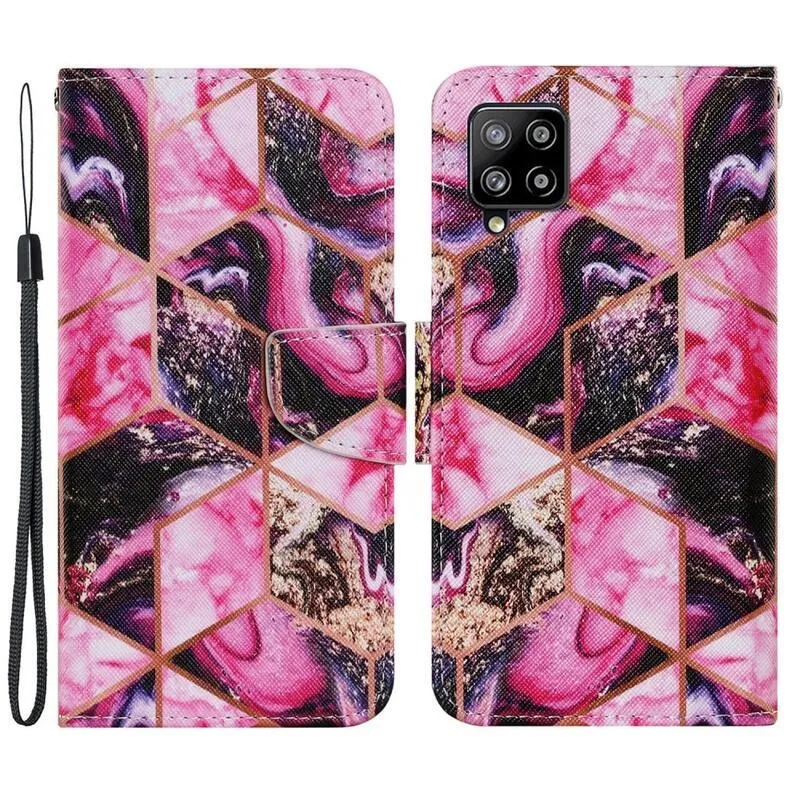 Patte pénztárca tok Samsung Galaxy A22 4G - rózsaszín geometriai formák