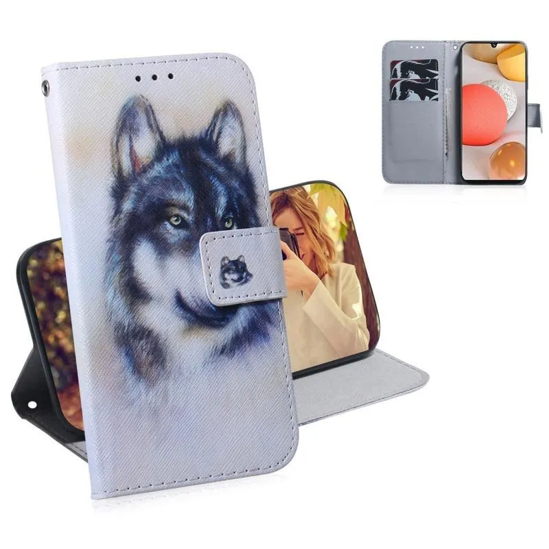 Patte PU bőr pénztárca tok Samsung Galaxy A42 5G - farkas