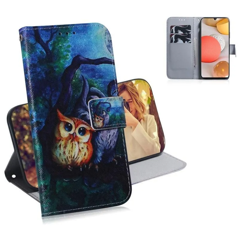 Patte PU bőr pénztárca tok Samsung Galaxy A42 5G-hez - bagoly