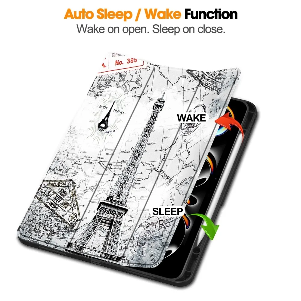 ✅Teljes védelem: A iPad Pro 13 (2024) Patte Eiffel Tower Smart Case tartós műbőr flip tokot és PC műanyag keretet kombinál, így átfogó védelmet nyújt a karcolások, esések és ütések ellen.