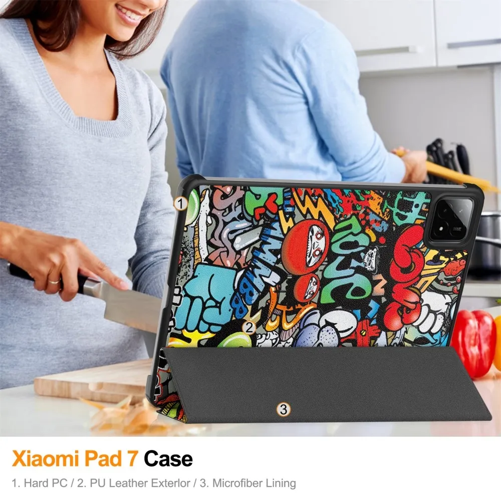 ✅【Prémium PU bőr és PC anyag】A Xiaomi Pad 7/7 Pro tablethez készült graffiti témájú pogácsás tok kiváló minőségű PU bőrből és PC anyagból készült az optimális képernyővédelem és tartósság érdekében