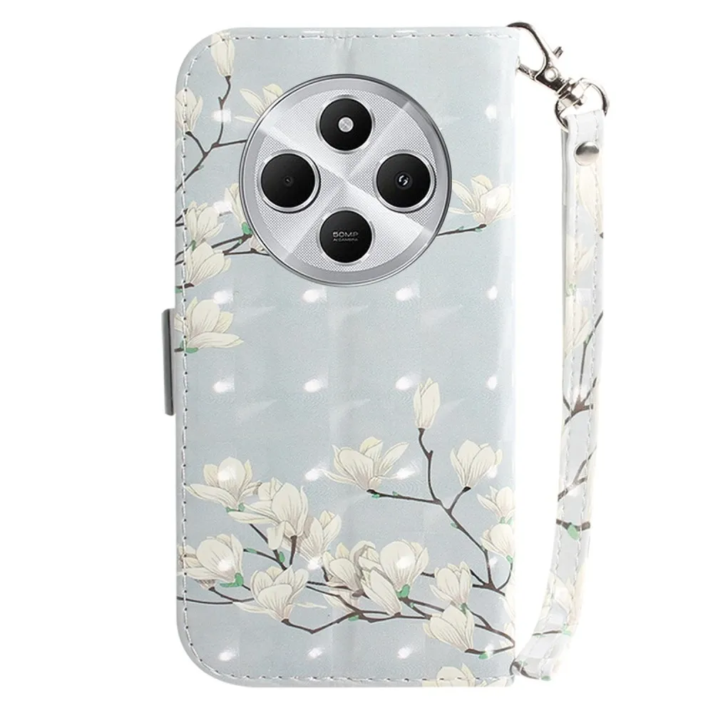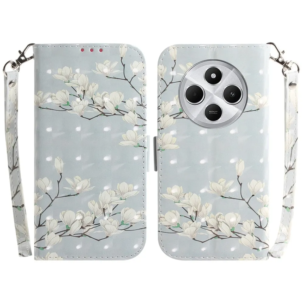 Könyv tok Patty a Xiaomi Redmi 14C/Poco C75-hez fehér virágokkal