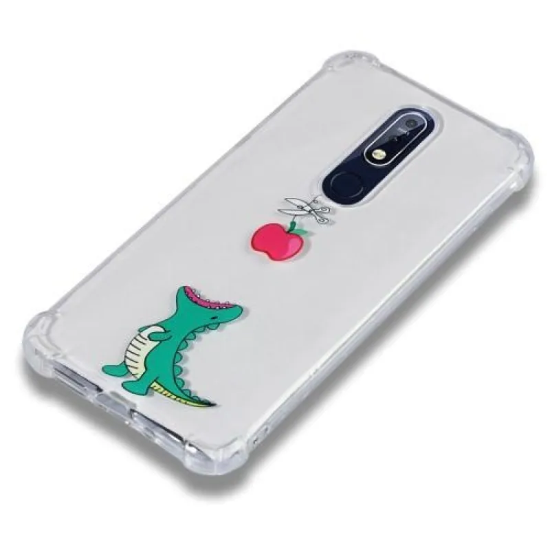 Patty zselés tok megerősített sarkokkal Nokia 7.1 készülékhez - dinoszaurusz és alma