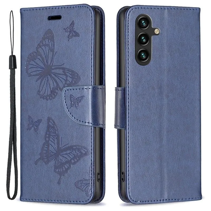Pillangó sötétkék pénztárca tok Samsung Galaxy A14 4G/5G számára