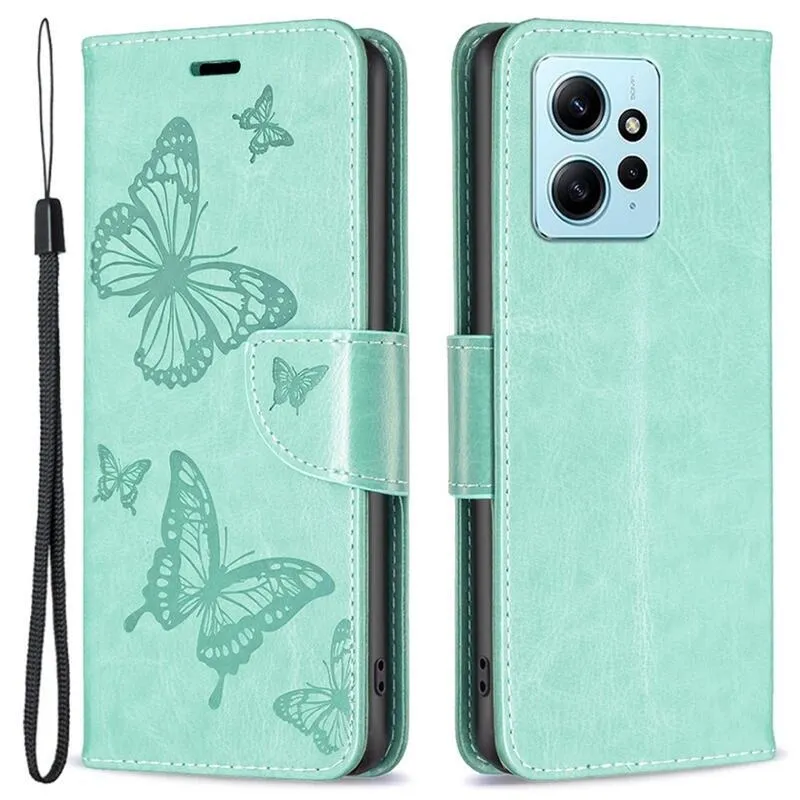Pillangó könyv tok a Xiaomi Redmi Note 12 4G-hez - teáskék színű