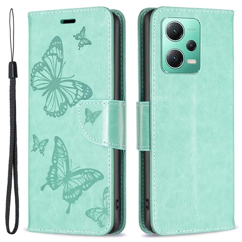 Pillangó zöld pénztárca tok a Xiaomi Redmi Note 12 5G/Poco X5 5G számára