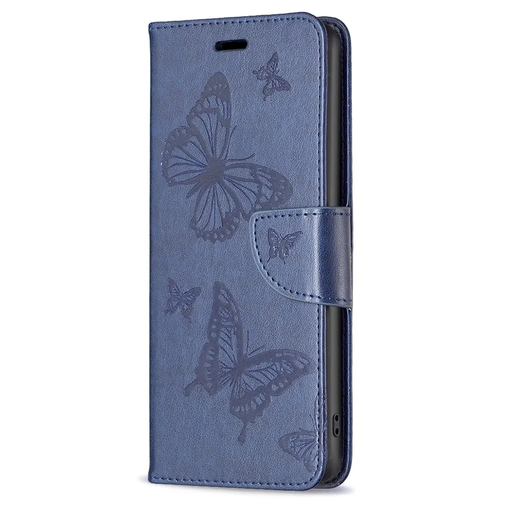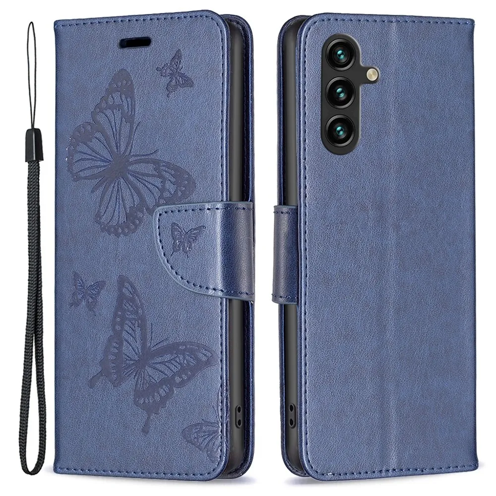 Sötétkék pénztárca tok Butterfly Samsung Galaxy A55 5G számára