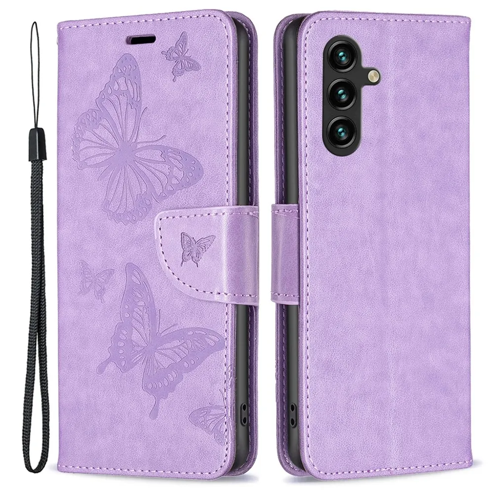 Lila pénztárca tok Butterfly Samsung Galaxy A55 5G számára