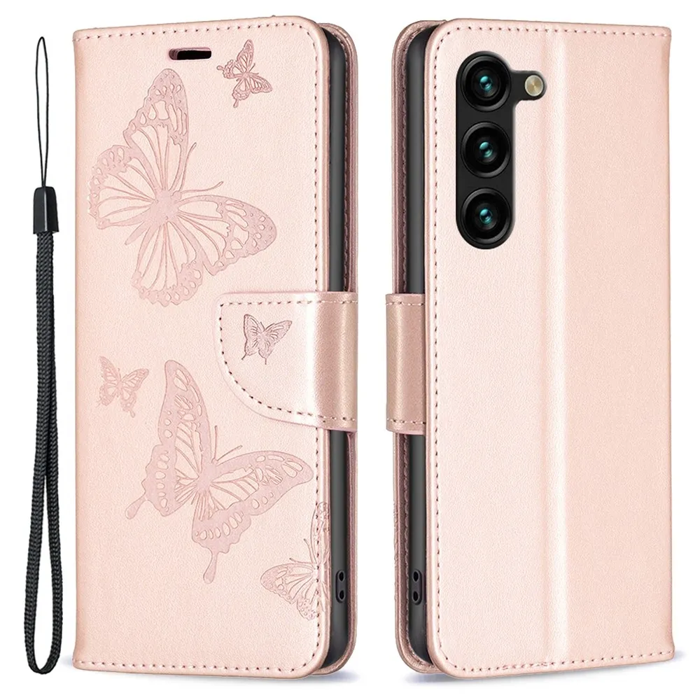 Rózsa arany pénztárca tok Butterfly Samsung Galaxy S24+/S25+ készülékhez