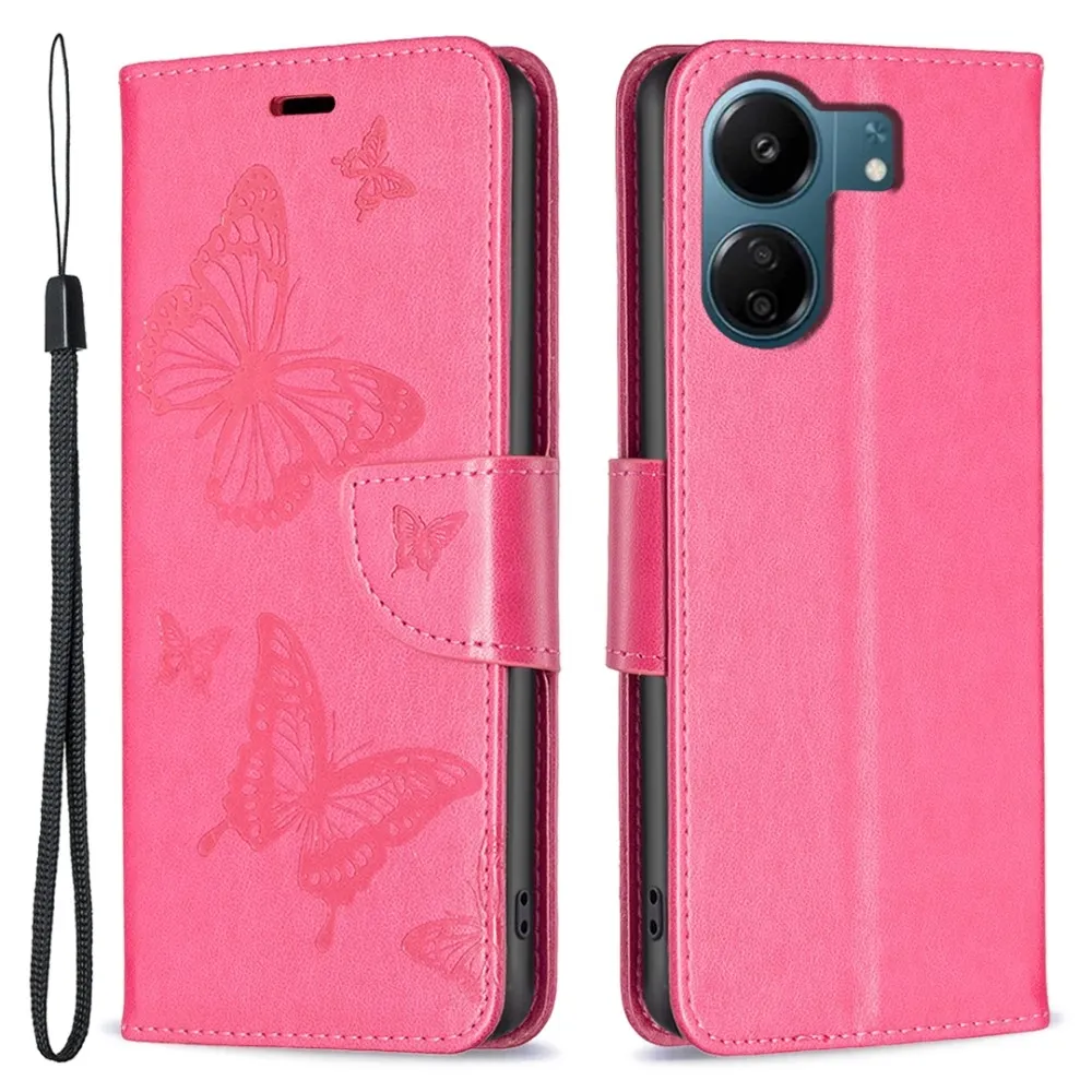 Rose pénztárca tok Butterfly a Xiaomi Poco C65/Redmi 13C 4G/5G számára