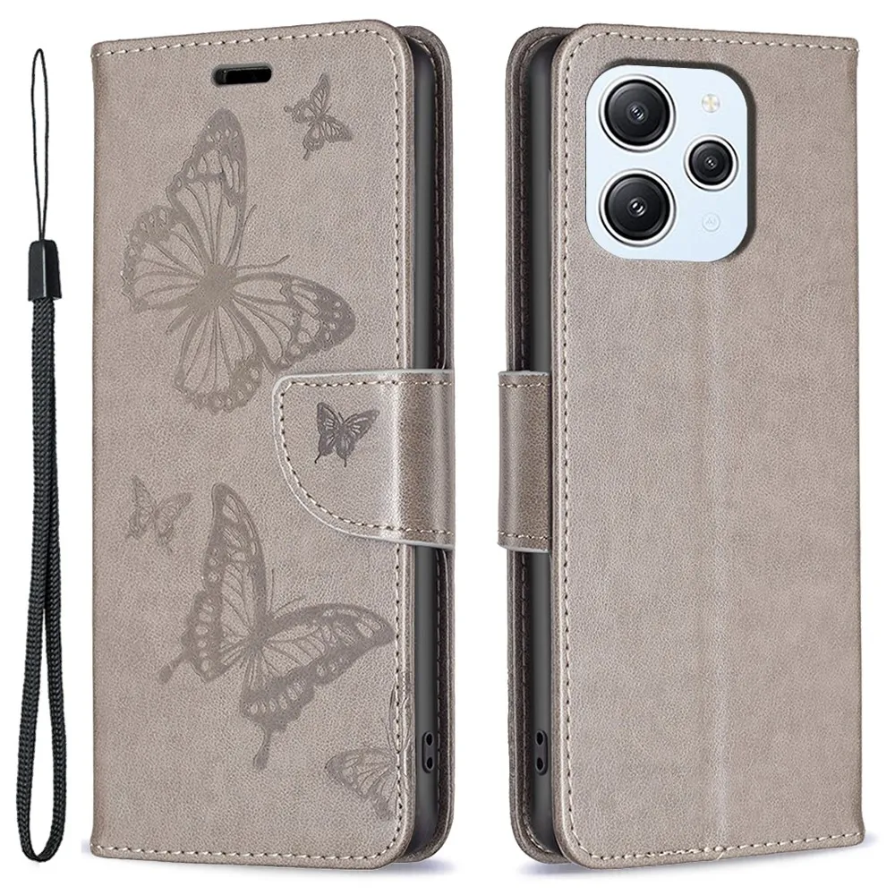 Szürke pénztárca tok Butterfly a Xiaomi Redmi 12 4G/5G-hez