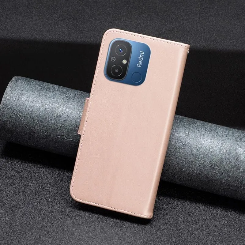Pillangó rózsa arany pénztárca tok Xiaomi Redmi 12C számára