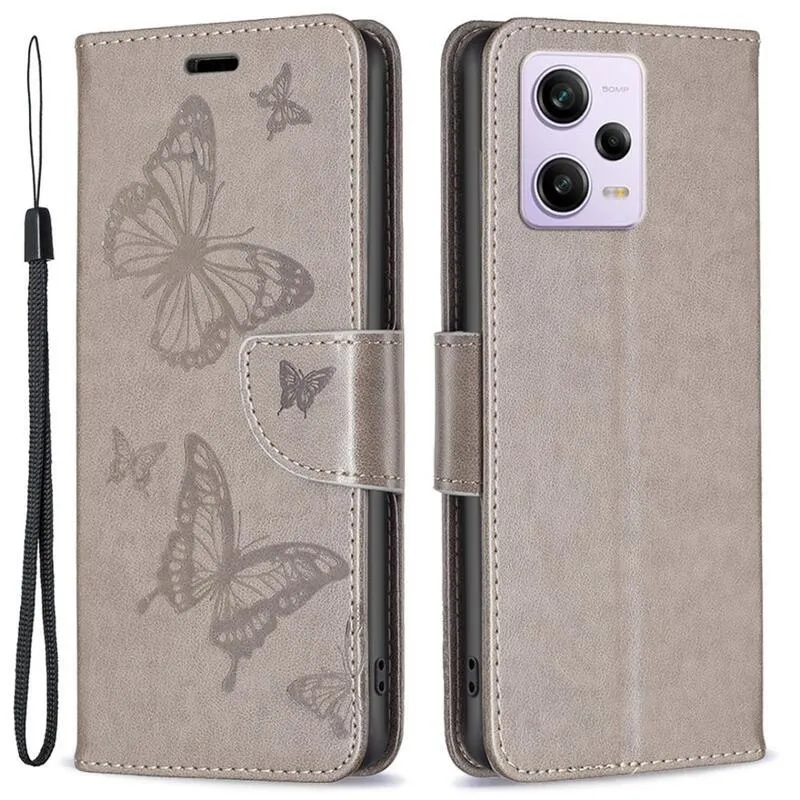 Pillangó szürke pénztárca tok Xiaomi Redmi Note 12 Pro 5G/Poco X5 Pro 5G számára