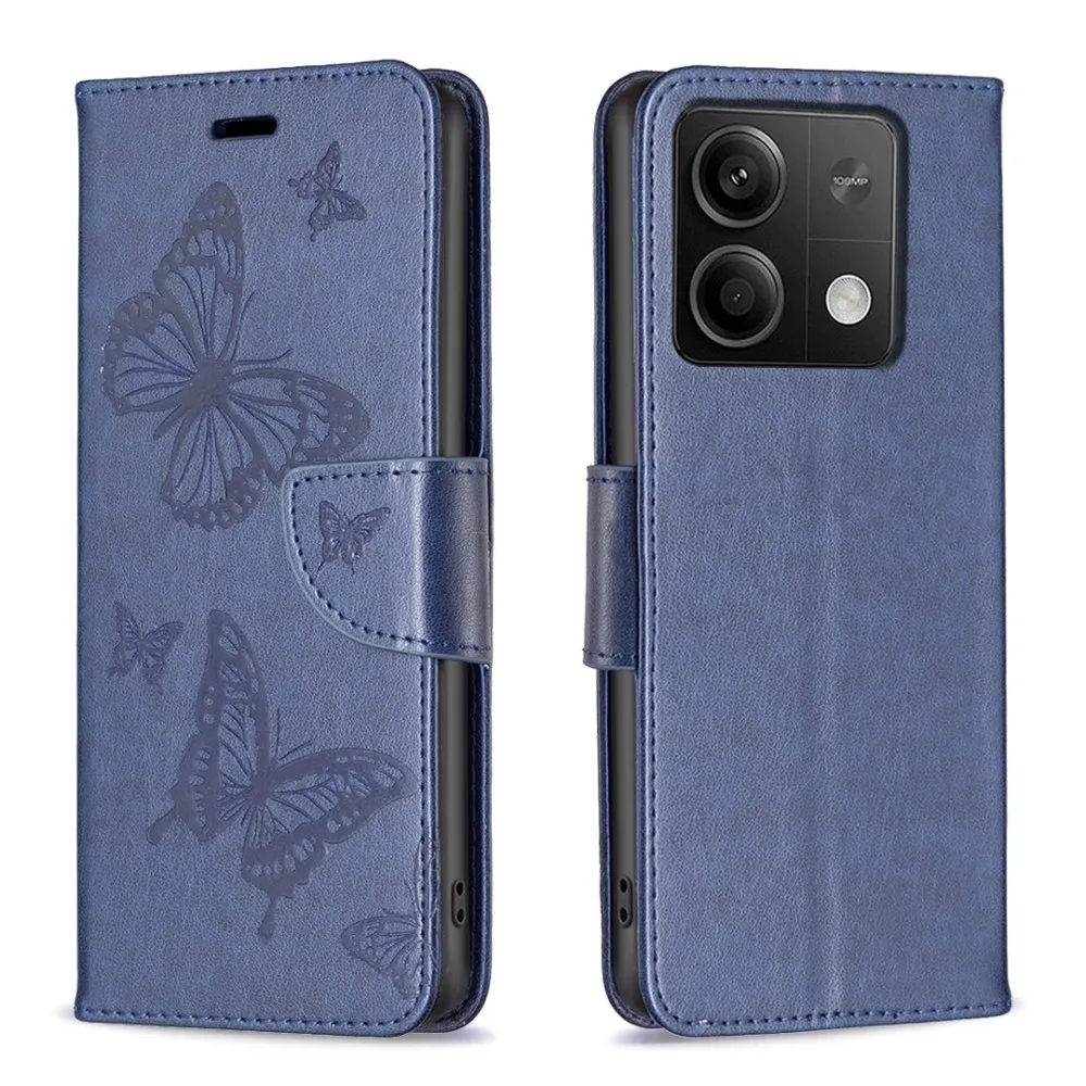 Sötétkék Butterfly pénztárca tok Xiaomi Redmi Note 13-hoz