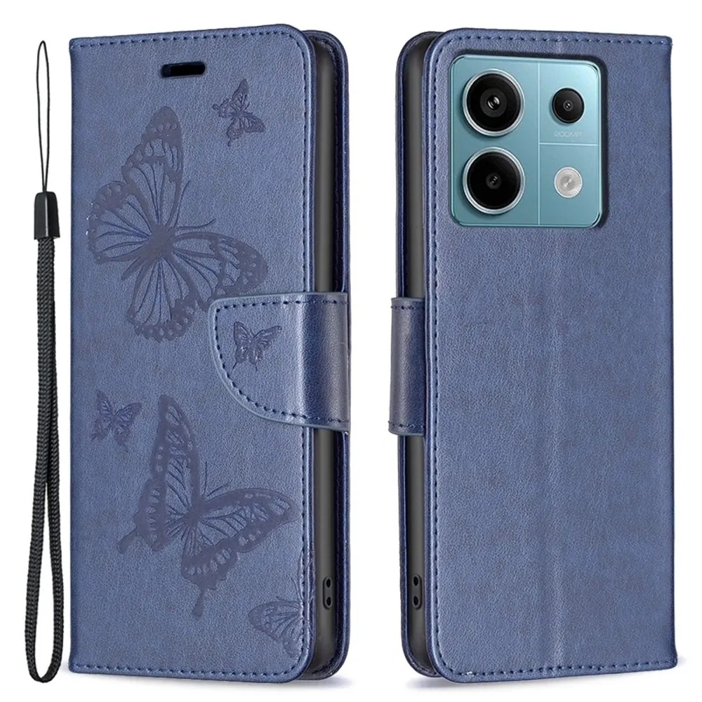 Kék pénztárca tok Butterfly a Xiaomi Redmi Note 13 Pro 4G/Poco M6 Pro számára