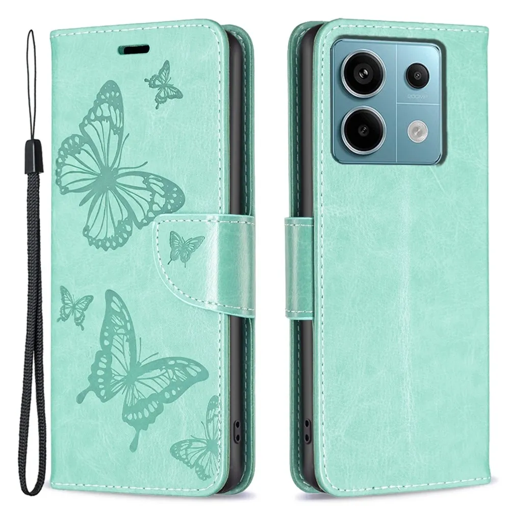 Kék-zöld pillangó pénztárca tok a Xiaomi Redmi Note 13 Pro 4G/Poco M6 Pro-hoz