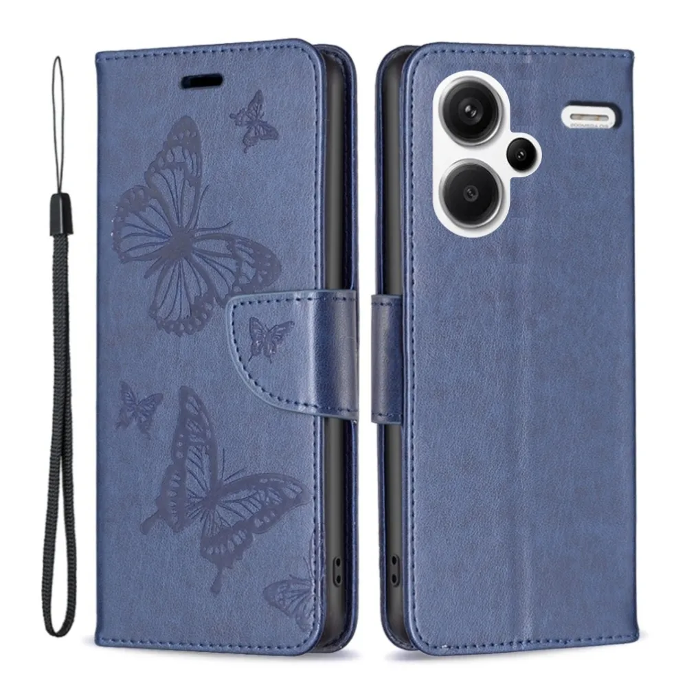 Kék pénztárca tok Butterfly a Xiaomi Redmi Note 13 Pro+ 5G számára