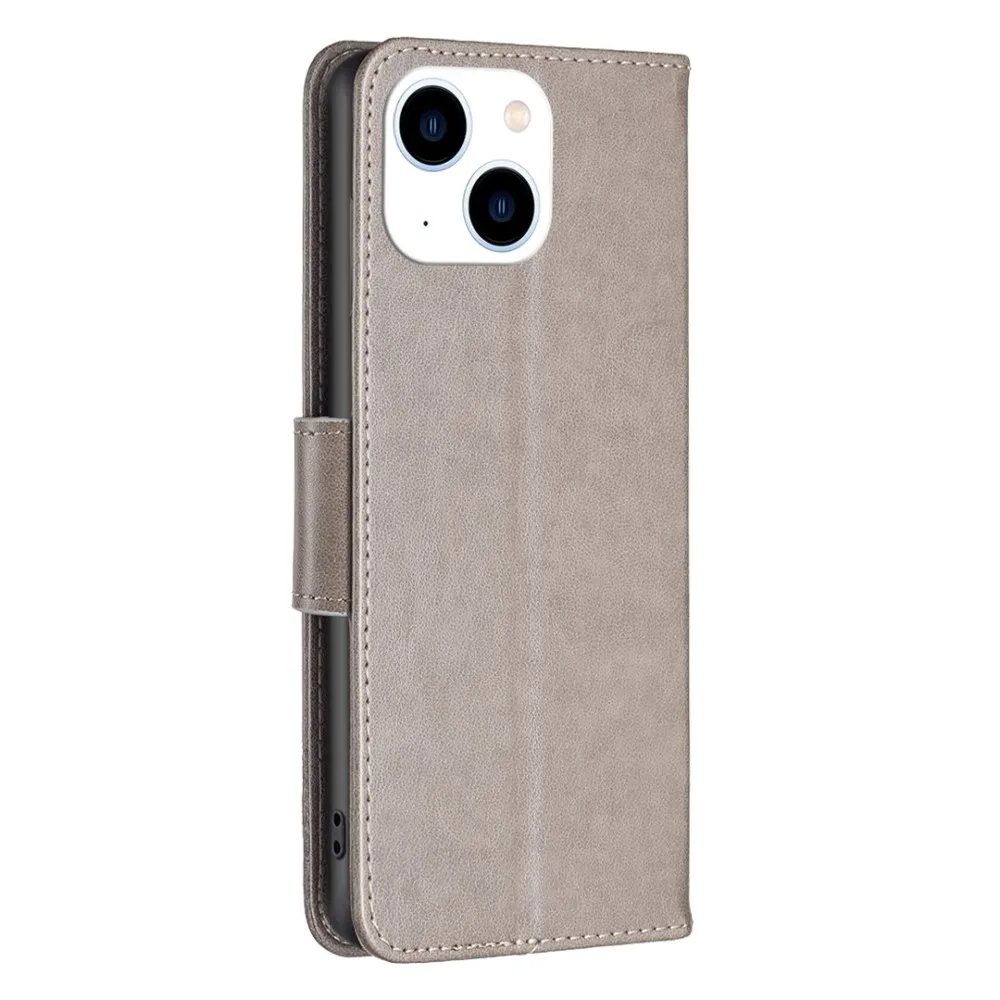 Szürke pénztárca tok Butterfly iPhone 15-hez